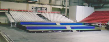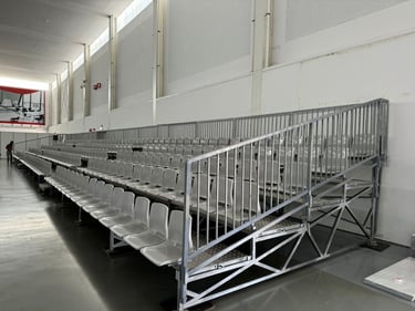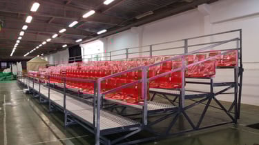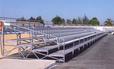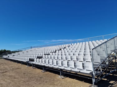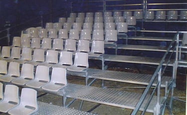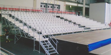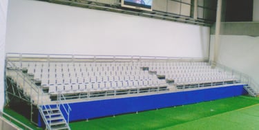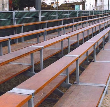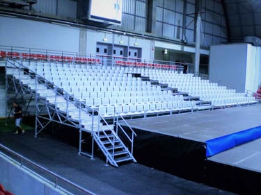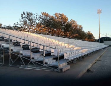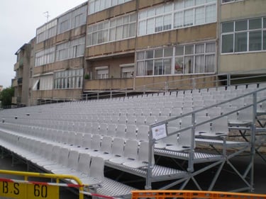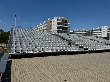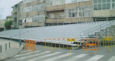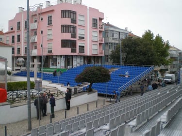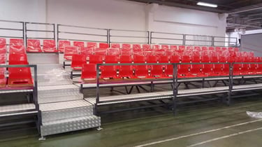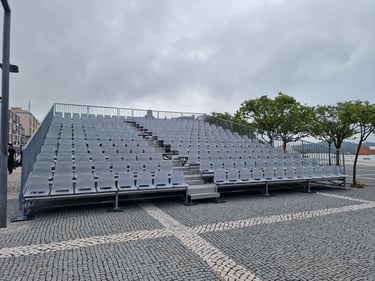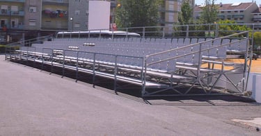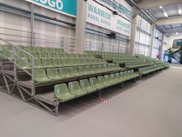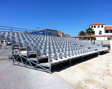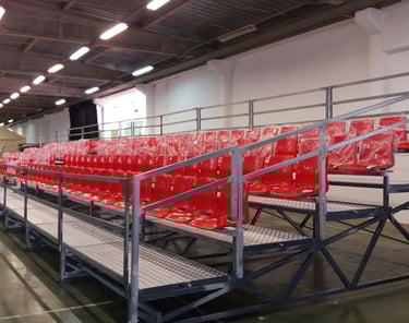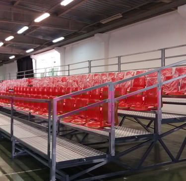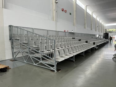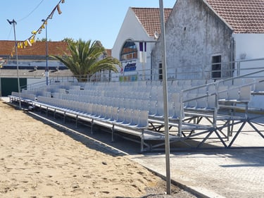 Disponibilizamos Bancadas com Cadeiras de várias cores para eventos ao ar livre, pavilhões e polidesportivos.