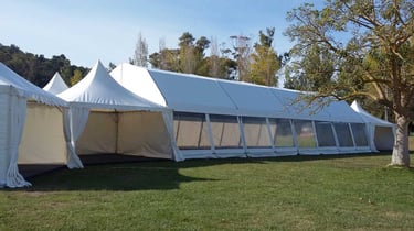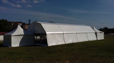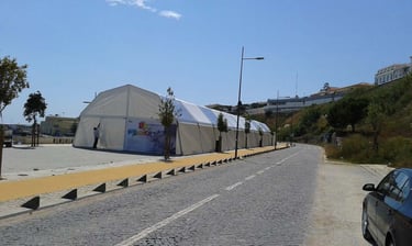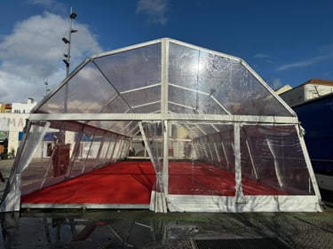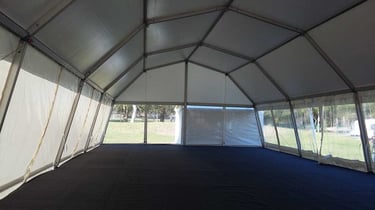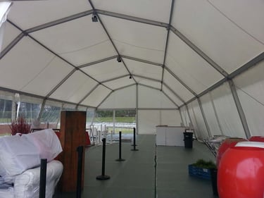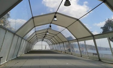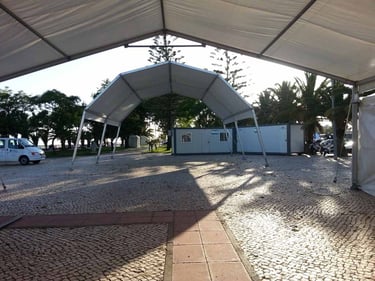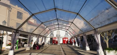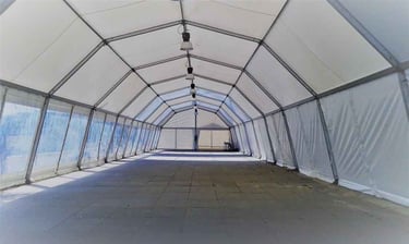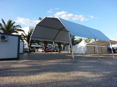 Estrutura em alumínio e tela PVC, branca, transparente ou outra cor.